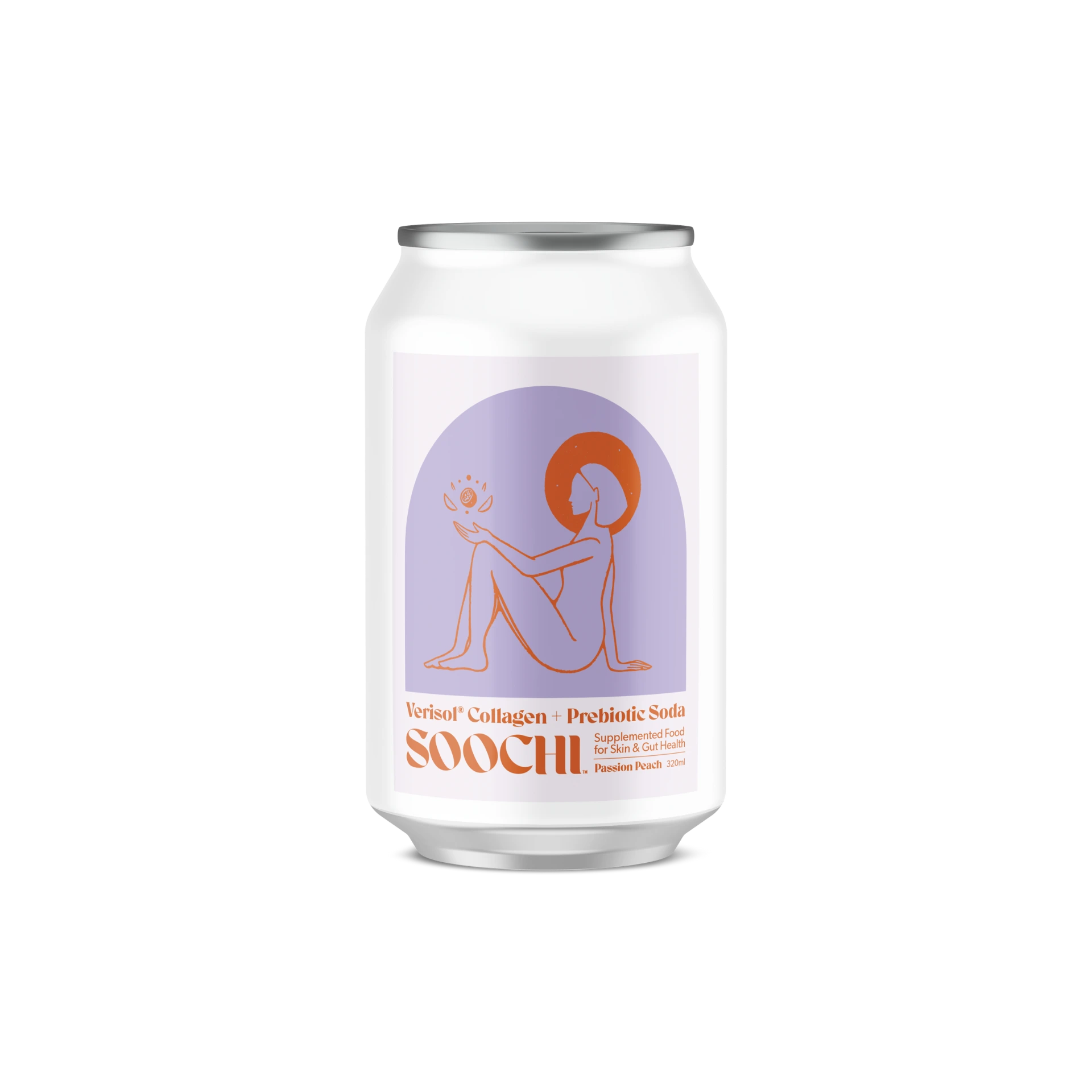 Soochi Drinks - Collagen + Prebiotic Soda- Passion Peach -4pk